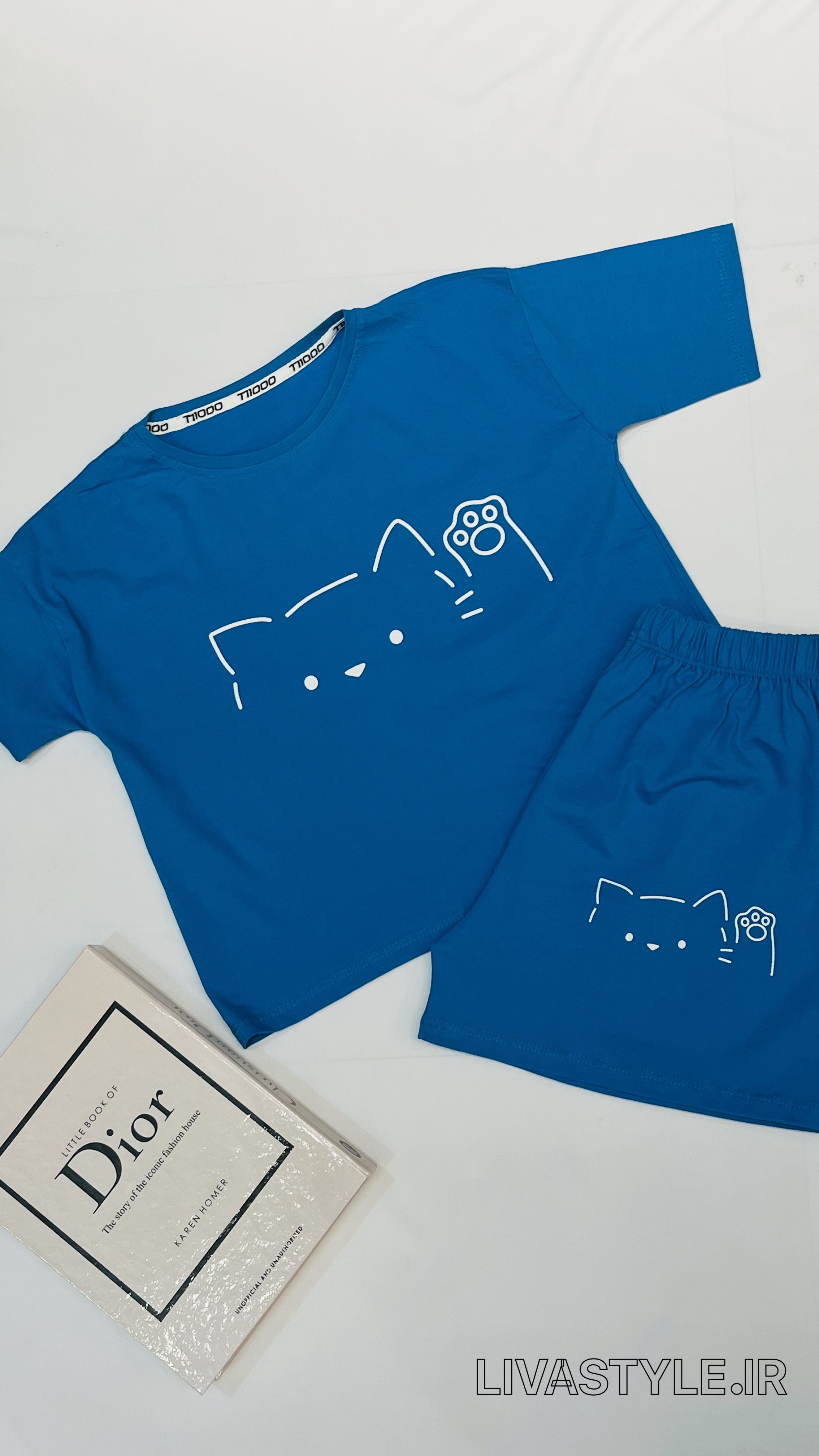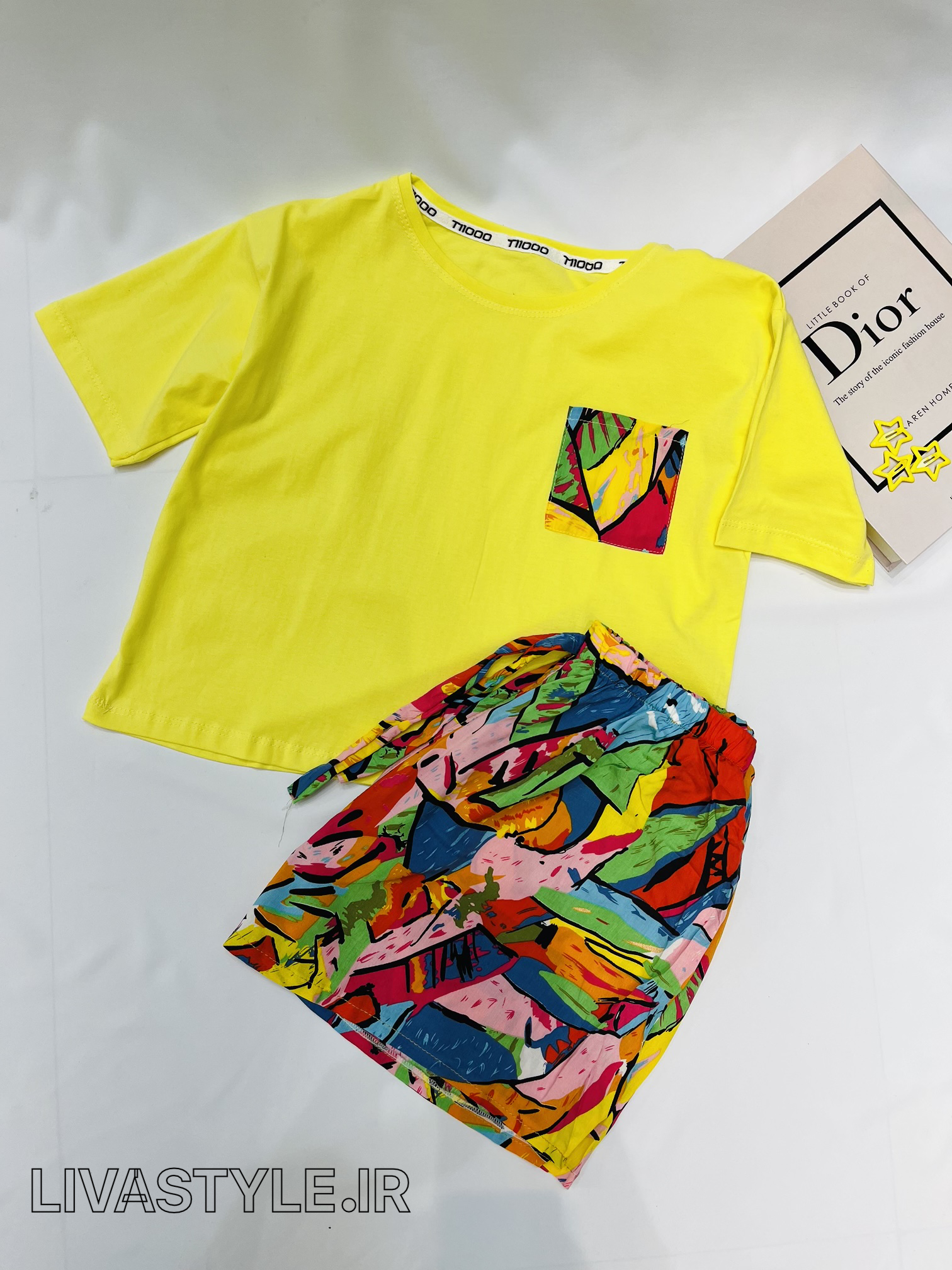 ست تیشرت کراپ و شرتک نخی طرحدار
